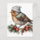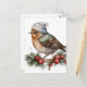 Carte Postale Aquarelle adorable Oiseau d'hiver