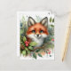 Carte Postale Aquarelle adorable Renard rouge