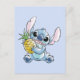Envoyez une tranche de vie insulaire avec cette carte postale Stitch à l'aquarelle ! Avec l'aimable alien tenant un ananas juteux, cette carte capture l'esprit ludique d'Aloha. Parfait pour envoyer un accueil ensoleillé à des amis et à la famille, cette carte postale est un rappel délicieux du plaisir hawaïen.