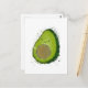 Aquarelle mignonne à l'avocat avec effet éclaboussure de peinture. Cartes postales personnalisées. Idée cadeau pour les amateurs d'avocat.