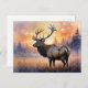 Cette peinture d'aquarelle sereine capture un wapiti majestueux debout gracieusement au lever du soleil, baigné de teintes dorées chaudes. Les coups de pinceau doux et l'atmosphère brumeuse créent une scène paisible d'inspiration nature, parfaite pour les amateurs de faune et d'art paysager.