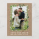 Aquarelle moderne Eucalyptus Cadre vert Enregistrer La Date Photo Fiançailles Carte Postale Kraft