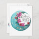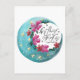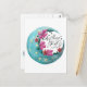 Carte Postale Aquarelle Lune avec étoiles et fleurs