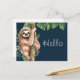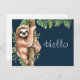 Carte Postale Aquarelle mignonne Sloth & Feuilles tropicaux Hell