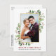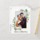 Elégante aquarelle hiver verdure Joyeux Mariage de Noël Photo Fêtes nouvellement mariées La carte postale comprend des feuilles d'eucalyptus et des baies saintes rouges. Cadre Or.