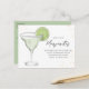 Ce design comprend un cocktail d'aquarelle de boissons margarita, le site de code QR en ligne rsvp, une simple fête branchée, un joli mélange de garniture de tranche de chaux, un texte de police de script de calligraphie moderne, un style de police de calligraphie capricieuse, un bar pour adultes qui boit des barreaux d'alcool, un cocktail de verre margarita Margherita, un modèle de carte postale économique, une adresse web