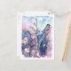 Carte Postale Arbre à oiseaux noirs Feuilles Dessin d'hiver Aqua