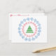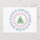 Un arbre vert stylisé se trouve au centre du cercle de petits ornements rouges, à l'intérieur d'un cercle d'ornements bleus de taille moyenne. Le texte "Joyeux Noël !" en script rouge sur le côté du message de la carte peut être modifié/supprimé.