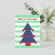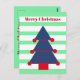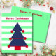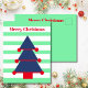 Changez vos souhaits de Noël avec ce design moderne rayé de Noël. Toujours en utilisant les couleurs saisonnières traditionnelles cependant dans des teintes différentes. L'arbre bleu est orné de décorations rouges. Vert, Bleu et Rouge. Il y a de la place pour votre message de vacances sur le dos avec le mot 'Amour' pouvant être supprimé si vous ne voulez pas l'utiliser. Salutation de Noël moderne et simple.