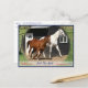 Arc Bars Miss et Bel's Starlet course devant la grange principale à OMRH à Paris, Kentucky. Cette belle carte a été conçue par Patti Wells à partir de photos prises par Sharon Kettlewell.