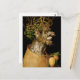 Carte postale Arcimboldo Winter. Huile sur toile de 1563. Giueseppe Arcimboldo a peint certains des tableaux les plus fascinants de la fin de la Renaissance. Composant des portraits avec des légumes, des fruits, des arbres, du poisson et d'autres aliments, l'artiste italien a développé un large soutien au sein du tribunal de Hapsburg. L'hiver est l'un de ses tableaux saisonniers et représente un profil en portrait composé d'un moignon mort avec seulement du lierre d'hiver et quelques derniers citrons. Un grand cadeau pour les amateurs d'Arcimboldo, d'art de la Renaissance et de peintures hivernales.