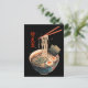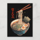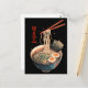 Cette conception présente une illustration délicieusement détaillée d'un bol traditionnel de ramen, avec des nouilles, des oeufs et divers garnitures. Les baguettes soulèvent quelques nouilles, ajoutant une sensation dynamique à l'image. Les personnages japonais apportent une touche authentique