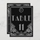 Cherchez-vous encore le thème parfait Années folles (années 1920) de l'ère "Great Gatsby" Numéros de table pour compléter vos arrangements de réception de mariage de soirée? Alors cette carte postale vintage d'inspiration, élégante et séduisante, noire et argent gris numéro 11 (onze) peut être l'article idéal pour vous. Montrant un cadre Art Déco complexe et géométrique dans des tons gris subtils pour imiter un effet argenté. Un cadre circulaire double englobe l'initiale de la mariée et l'initiale de la mariée. Seule l'avant de cette carte postale design a une finition à effet transparent.
