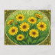 Bright yellow daisies on a green background, in an art nouveau inspired frame makes a darling and cheerful postcard. Has a very retro-modern look that is both fun and elegant.