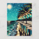 Jolie côte romantique en contact avec vous manque votre carte postale. L'art de l'île représente une rangée de palmiers avec des lumières blanches éclairées. Une jolie réflexion sur la plage de sable et les vagues.