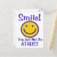 Mettez un visage humain sur l'athéisme avec un visage jaune vif, en bleu avec des lettres bleues qui dit : "Souriez ! Vous venez de rencontrer un ATHÉISTE."