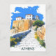 Cette carte postale romantique présente une illustration en skyline inspirée de la Grèce d'Athènes, et est un excellent choix pour les voyageurs à Athènes Grèce.