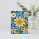 De grands pétales stylisés en jaune doré s'asseyent contre du cerulean cool dans un motif floral plat ensoleillé et d'inspiration côtière.