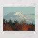 Sur cette photo d'automne du Mont Rainier, qui s'élève à 4 411 pieds au-dessus du Puget Sound, à environ des kilomètres au sud-est de Seattle, WA, la montagne montre ses couleurs d'automne. Des arbres à feuillage persistant vert foncé rejoignent les beaux arbres décidus à feuilles rouges et dorées qui dansent et se courbent au premier plan par un vent vif. Des éclats de nuages fumés soufflent sur le sommet et le pied de la montagne contre un ciel bleu clair. Si vous regardez de près, vous pouvez voir des oiseaux noirs se balancer autour de la section du milieu à la partie inférieure droite de la photo. Copyright Gail Storrs 2007.