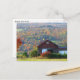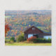 Il s'agit d'une carte postale d'une grange pittoresque rouge et blanche avec des collines ondulantes à perte de vue. De magnifiques couleurs automnales de rouge, jaune, orange, or et vert sont au premier plan et peignent les coteaux environnants.