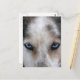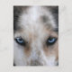 Carte postale avec les grands yeux bleus d'un chien de traîneau enveloppant.