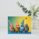Cartes postales avec quatre perroquets en casquettes de fête