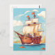 Déposez votre voile avec cette carte postale magnifiquement illustrée qui présente un majestueux bateau de pirate vintage lors d'un voyage océanique ensoleillé. Idéal pour les amateurs de voyage, les amateurs de pirates ou tous ceux qui rêvent de mer. Envoyez une vague de nostalgie !
