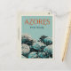 Un grand cadeau pour tous les amoureux des Açores idéal à offrir ou à envoyer à un ami, belle carte postale rétro original illustration avec vue sur les hydrangées typiques des Açores Portugal