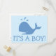 Carte postale baby shower baleine | C'est un garçon ! Belle invitation animalière pour bébé.