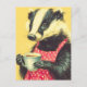 L'IA a produit l'art d'un adorable blaireau avec un tablier rouge avec des pois blancs tenant une tasse de café