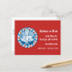 Un badge de style barbier rouge blanc et bleu rétro sur arrière - plan rouge. a un look moderne et peut être un excellent outil de marketing pour votre barbier ou d'autres hommes de l'entreprise de toilettage. Customisez avec les détails de l'entreprise à l'avant et à l'arrière.