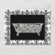 © Susan Eby Glass / Pomme sauvage. Baignoire contemporaine française en noir et blanc. Des motifs floraux noirs et blancs entourent l'image.