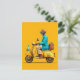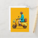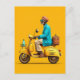 Une oeuvre d'art vibrante avec un homme âgé chevauchant un scooter jaune classique sur un fond jaune audacieux. Habillé d'un blazer turquoise, de turban rayé et de lunettes de soleil tendance, il respire le style et l'aventure. Idéal pour des designs modernes, rétro et inspirés du voyage.