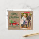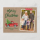 Script de brosse moderne Aquarelle Vintage Camion rouge avec arbre de Noël Joyeux Noël Famille Photo Carte postale - Papier Kraft rustique, Bande d'artisanat de flocon rouge