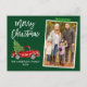 Écran moderne Bracelet Aquarelle Vintage Camion rouge avec arbre de Noël Joyeux Noël Famille Photo Carte postale - Vert forêt, Flocon de neige Bande d'artisanat vert