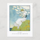 Carte postale avec illustration Art déco Un peu Petite Robe de Campagne par George Barbier (1882-1932) Une femme sur le flanc d'une colline en robe de campagne blanche tenant une marguerite. Une image numériquement améliorée de la Gazette du Bon Ton un magazine de mode français.