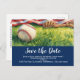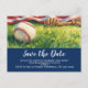Annoncez votre jour spécial avec une touche ludique et patriotique ! Cette carte de sauvegarde de baseball présente un baseball classique reposant sur une herbe verte luxuriante avec le drapeau américain flottant fièrement en arrière-plan. Parfait pour les amateurs de sport, les passionnés de baseball ou les couples qui célèbrent leurs fiançailles ou leur mariage avec un thème amusant, sportif et patriotique. Le style d'aquarelle moderne et lumineux ajoute du charme et des couleurs vives pour rendre votre annonce mémorable.