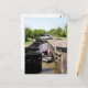 Un dessin photographique d'un canot étroit qui vient d'entrer dans l'écluse et d'attendre la fermeture des portes d'écluse.