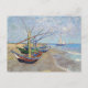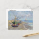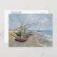 Carte postale d'art avec le tableau postimpressionniste, Bateaux de pêche sur la plage aux Saintes-Maries-de-la-Mer (1888) de Vincent van Gogh (1853-1890) Quatre bateaux amarrés sur le sable au bord de l'eau.