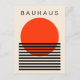 Un design d'art moderne dans le style Bauhaus d'un soleil rouge orange avec des lignes horizontales noires sur un arrière - plan beige.