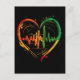Un coeur avec l'onde de pouls à l'intérieur avec des couleurs rouge, or, rasta vert pour symboliser l'effet du reggae sur le coeur