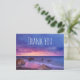 Carte postale Merci avec une belle photo aux couleurs frappantes de violet, bleu et rose au coucher du soleil. Un joli littoral parsemé de rochers.