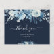 Une belle carte postale pour envoyer des messages de remerciement à vos invités mariages. Il a des fleurs d'aquarelle bleues et blanches et une police de caractères en caractères blancs devant. Vous pouvez modifier le texte et les couleurs.