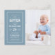 Invitations de cartes postales Baptism pour bébé imprimé sur mesure et abordable. Ce design classique présente une mise en page typographique moderne à côté de la photo de votre enfant. Gardez l'arrière - plan bleu sucré ou utilisez les outils de conception pour choisir n'importe quelle couleur arrière - plan et modifier les polices pour convenir à votre style. Personnalisez le design avec les détails de la fête du baptême de votre enfant. Amusez-vous à créer votre propre invitation de baptême unique pour votre bébé garçon.