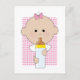 Bébé mignonne fille avec son biberon - parfait pour les annonces de bébé et les douches