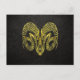 Signe du zodiaque Bélier en or sur fond de cuir noir.