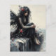 Une mignonne fée en robe noire se trouve sur une falaise surplombant la mer imaginaire de l'art généré par l'IA