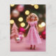 Carte Postale Belle poupée de Noël Rose Bleu