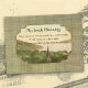 Arrière - plan vert doux et or plaid avec étiquette centre portant une image historique de 1900 de Carlingford Lough, Comté Down avec la bénédiction irlandaise dans le texte de style celtique.
