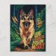 Un berger allemand traverse une forêt, ses pattes percutent le chemin de terre. Le chien a un regard déterminé sur son visage et sa queue est légèrement à la traîne. Les mots plomb avec force, Suivre avec coeur sont imprimés sur le côté droit de l'image.
